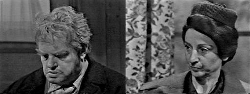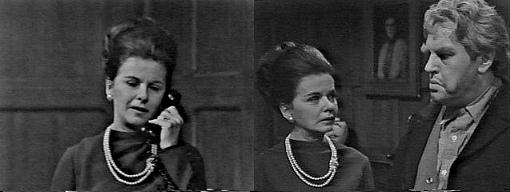 NOTES: So Burke and Sarah's plan worked--Mrs. Johnson is hired as housekeeper to Collinwood and spy for Burke. Should prove quite interesting. Sarah's obvious love for her former employer is both lovely and depressing. She was in love with him, it's so apparent, and cares so much, she wants to help uncover the soul who murdered Bill. In many ways, she and Matthew are alike. We know she doesn't really like Burke, and his attitude toward her when he thought she didn't get the job was nasty. There is a possibility that she will come to like the Collinses so much, she will renege on her agreement with Burke. When she met Liz, I got the impression that these were two rivals for Bill's affection. Too bad neither of them went for it, he was a nice guy. How will Sarah Johnson affect the Collins household? She's a highly principaled woman; on whose side will she eventually fall?