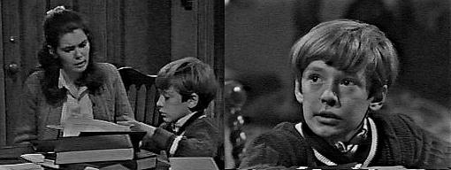 We see that pen on the David's desk as Vicki explains to him that he made a mistake in multiplication--eight times eight is sixty-four, not sixty-five. Big deal! Says David, it's close. Close isn't good enough, you have to be perfect, says Vicki. Nobody's perfect, says David, taking his crystal ball and sitting on the bed with it, you told me that yourself. That had nothing to do with math, she says. I bet Mrs. Johnson doesn't know what 8 times 8 is, says David. Mrs. Johnson? Asks Vicki. She was Mr. Malloy's housekeeper and she's coming to work for us, says David. Who told you? asks Vicki. I heard my Aunt Elizabeth phone her, says David--you know what else I know? I know what you don't know, says Vicki, and that's math--now let's get back to work--tackle the next problem. He returns to the desk and boasts that he's going to be a millionaire when he grows up. Then you'd better learn to add up your money, suggests Vicki--next problem! I'm going into partnership with Burke, says David--and he and I are going to own half the world. Which half? She asks. You don't believe me, he says, but Burke and I are real good friends--you know what he told me? No, what? she asks. He said he wouldn't hurt anybody that he likes, replies David--so you'd better start trying to get me to like you! How, by skipping math homework? She asks. Yes! he says. No such luck, Vicki laughs--besides, no one can hurt me, because I've got a fairy godmother. That's kid stuff, scoffs David. How else do you think I can walk along the beach and find a beautiful pen like this? she asks, showing him the pen. Roger enters the room at this moment. Did you really find it? asks David. Of course,, she says, I was walking along, just thinking, and I happened to look down and there it was. So, this is how you do homework, says Roger, discussing walks along the beach. I was just telling David how I happened to find this pen, explains Vicki. Oh, says Roger, the pen--you mentioned it to me, didn't you--may I see it? Of course, says Vicki, handing it over--I wonder if I shouldn't advertise in the local lost and found. Roger looks the pen over. That's crazy, says David, someone will take it from you. It is lovely, agrees Roger--I'd keep it, it probably fell off some passing pleasure boat and washed ashore--consider it the ocean's gift to you. If it were mine, says David, I wouldn't let anyone take it from me! The phone rings. I don't think anyone's downstairs, says Roger, I'd better go answer the phone. He leaves the room. David stops him, reminding him he's taking Miss Winters' pen.