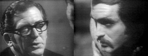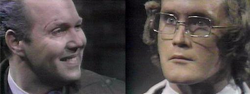 Cyrus and Gladstone stare at each other, and although the latter believes Cyrus will deny his accusation, Cyrus asks, "Why should I?" then adds, "...deny such a ridiculous accusation?" Gladstone reminds Cyrus, the compound I sold you is capable of restructuring the chromosomes (ah HA)! That isn't it's main use, says Cyrus.  Gladstone suggests, that's exactly what YOU are using it for, to give you a chance to be someone you aren't, be filled with lust for life, to experience pleasures you won't find in this lab--excitement, love, adventure. All of which I've found here, says Cyrus--your theory is interesting, but mad, Gladstone. The drug dealer doesn't believe that--where is John Yaeger tonight? he asks. I don't have the faintest idea, says Cyrus. I know very well, boasts Gladstone--I have what I consider to be proof. You do not, says Cyrus. The day after I first provided the compound, says Gladstone, you called me about eliminating   amnesia. Yes, I was performing an experiment, says Cyrus. Consulting a small notebook, Gladstone reads, "The night before, John Yaeger appeared in Collinsport for the first time"--I've checked the dates. Pure coincidence, insists Cyrus. I reworked the formula for you, says Gladstone, and the following Tuesday, Cyrus Longworth left on a mysterious trip and Yaeger miraculously appeared--I checked this with your fiancee. I will not have you questioning her! says Cyrus. Why? asks Gladstone--are you afraid she'll find out, too? There is nothing to find out, says Cyrus. My investigation was most thorough, says Gladstone--next, Yaeger appeared at the Eagle with a check signed Cyrus Longworth. I gave that money to Longworth (meaning Yaeger), a loan, says Cyrus. And then there's the matter of the painting that once hung on this wall and that now hangs in Miss Harrington's room. So you've been to see her, too, says Cyrus. Oh, you've trapped yourself now, Longworth, says Gladstone--why would Dr. Longworth care whether I saw her or not? Yaeger is not going to like your interfering, warns Cyrus, now sounding a lot more like his bombastic alter ego. I know, says Gladstone, when you see Yaeger, please let him know that I've taken proper precautions--I've written it all down! Shaking, adjusting his glasses, Cyrus says defensively, Yaeger has done nothing wrong.   (really? I guess beating/rape isn't wrong to Cyrus). Not as far as the law is concerned, retorts Gladstone, but surely the fact that you can turn yourself into someone else would be very upsetting to many--your fiancee, Miss Harrington, Quentin Collins, your friends at Collinwood... Seething, Cyrus doesn't answer.  You don't have to admit it if you don't want to, says Gladstone, and if you want to maintain the illusion that no one knows, I'm perfectly willing to go along with that. You want something, guesses Cyrus. Yes, says Gladstone, almost regretfully, I had SO much trouble with your compound; I'm woefully underpaid, it takes up more and more of my time--the delivery tonight, that compound isn't nearly ready, and if you want another on Friday...  HOW MUCH DO YOU WANT? demands Cyrus. "Ten thousand dollars!" shouts Gladstone, his voice going instantly from affable to angry. You're mad, says Cyrus, repeating the amount--why should I pay that? It's a small amount to pay for the existence of John Yaeger, says Gladstone, and that is what you are buying--without my compound, John Yaeger will never walk the streets again (Gladstone doesn't know about Yaeger's appearance without the compound)--you don't have to make up your mind right away, Friday will be plenty of time, but remember, I wouldn't try to silence me, if I were you, unless you want someone very close to you to read the whole story. He turns to leave.  Cyrus says, "This isn't your first attempt at blackmail, is it?"  "Why do you think my number was in Angelique Collins' phone book?" asks Gladstone.--"She's lived many lives--each person only gets one!--Good night." (This tells us volumes about Angelique--did she rely upon something Gladstone sold her to retain youth and beauty, even in death)? Gladstone leaves.  Cyrus looks as furious as Yaeger in his more insane moments.