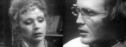 Please, begs Liz. You go, I'll come down soon, says Julia. Liz protests--I hate to leave you alone. Quentin tries to feel the barrier preventing him from entering. Julia looks at Liz and says, "If I thought I could join him, I would stay here forever." Julia, chides Liz, and leaves. Julia speaks plaintively to the air--"Barnabas, can you hear me?" She walks around--are you standing in that hall in the other time, watching me? "Hoffman!" calls Quentin. Julia continues. "Unable to make me hear you or see you? Or has your curse, that terrible curse, been discovered--if only I knew, if only I knew!" Quentin, perplexed, again calls to Hoffman, who responds--from behind him--HIS Hoffman.  The other stands in the room, longing for and fretting over Barnabas.
