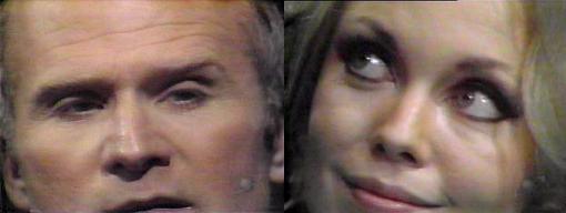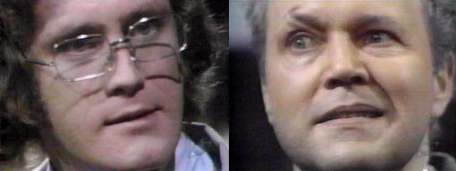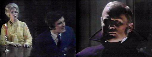 1009 - The spirit who appears at Angelique and Quentin's seance is none other than Joshua Collins, who identifies himself as the master of Collinwood, father of Barnabas (from PT or RT?)--you know all there is to know about Barnabas, says the apparition in a very creepy voice. Then why did you appear? asks Quentin. You must be warned, intones Joshua. Of what? asks Quentin. An evil has come into this house, reveals Joshua, and it has disturbed the graves of all those who once lived here. I don't understand, says Quentin--what evil? You have not seen it yet, says Joshua, for it has not yet appeared, but it exists, and it WILL appear! How? asks Quentin, you must tell us. I cannot tell you, says Joshua, I do not know what form it will take. You've got to tell us more, insists Quentin. You are of the living, says Joshua, I am of the dead--but this evil of which I speak is both! This puzzles Quentin. Living and dead? asks Angelique--how can that be possible? (Look in a mirror, honey.)