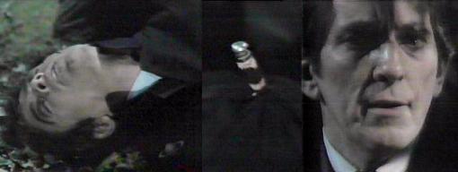 Barnabas, searching the woods, finds a body, a dagger sticking from its back--Claude North, dead, stabbed by his own dagger.