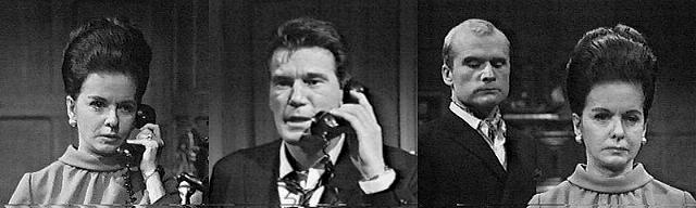Roger, looking very dapper, paces the drawing room, telling Liz that Vicki is a dangerous woman to have in this house--she has illusions, which he's sure is nothing but an overactive imagination--like this business of seeing Malloy's ghost--it's ridiculous. I'm not so sure, says Liz. Lord knows what we can expect if she decides to have another vision! says Roger. What exactly are you trying to say? she asks. Get rid of her, advises Roger--she could threaten David's safety--it's plain she doesn't like the boy, and there are times when I sense he's afraid of her! David afraid of her! says Liz, incredulous--after what happened last night, I think it's the other way around. She answers the phone--hello, Mr. Garner--you just heard what?--he did?--how much did he offer?--of course I intend to do something about it--how much do you think I need?--that much?--Roger is paying close attention--no, I can't give you an answer right now--how much time do I have?--I see--all right, I'll call you back--thank you for calling. What is it? asks Roger. Burke, his man Blair just made an offer for the Logansport Fishing Fleet and Cannery, she says. Interesting, remarks Roger. Interesting! Says Liz--is that all you can say?--don't you know what it means?--Burke plans to go into competition with us--I won't let him do it! How do you intend to stop it? asks Roger. I'll top his bid! vows Liz. With what?--if you top it, he'll just raise his bid! points out Roger--you can't win at his game, Liz. I'll think of something, she says. How much time do we have? asks Roger. Ten days, she says, pacing. Ten days!--oh, forget it, he says--we couldn't raise that kind of money in 10 years!--let him have the Logans cannery. You never were much of a fighter, accuses Liz, that's where we're different--I am--and I intend to fight him with everything I've got! Why don't you face it, says Roger--he's too much for you--he has endless resources--what do you have? There was a time I depended on you, she says--now I wonder. (ZING!) She gives him a disapproving look.
