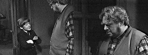 David enters Vicki's room and finds her notebook. Aloud, he reads, "I knew immediately that it was Mr. Malloy--or the ghost of Mr. Malloy--he was wearing the same clothes in which I'd last seen him--he was soaking wet as though he'd just dredged up from his watery grave--there was seaweed hanging from his shoulders--it was the most horrible sight I have ever seen in my life." David closes the journal and returns to the hallway, where Matthew is replacing the lock. What if there's somebody inside there? David asks him. There isn't, insists Matthew. What if there was? asks David--could they get out after you put the new lock on? You ask too many questions, says Matthew. DO you believe in ghosts? asks David. I don't believe or disbelieve, smiles Matthew. Do you want me to tell you why you're putting that lock on the door? queries David. You don't have to tell me, says Matthew--because Mz. Stoddard told me. But do you know WHY? asks David. I don't care why, says Matthew. I'll tell you anyway, says David--Aunt Elizabeth didn't tell you to put it on just to keep people from getting in--but also maybe to keep ghosts from getting out. What ghosts? asks Matthew. The ghost Miss winters saw last night, says David. Whose ghosts did she see? asks Matthew. The ghost of Mr. Malloy, says David. You sure? asks Matthew, immediately upset--is that what she said? It doesn't matter what she said, says David. Matthew grabs his arms and demands to know what she said. You're hurting my arms! Protests David. What did she say? he asks again, letting the boy go. She said that he told her about the night Mr. Malloy was murdered, says David. It couldn't be, says Matthew, the sheriff and coroner both said it was an accidental drowning. That isn't what the ghost said, David tells him--I don't remember it all, but it did say somebody killed Mr. Malloy--I thought so all along, didn't you? No, I didn't, says Matthew, I didn't think anything about it at all. Before you finish putting the lock in, says David, why don't you let me take you in to see the room?--the room that Mr. Malloy's ghost came to visit Miss Winters in. I wouldn't like that at all, says Matthew. How do you know? asks David, maybe it's still in there! I don't want to, says Matthew, gulping. Wouldn't you like to talk to Mr. Malloy again? asks David. Why should I? asks Matthew. Maybe he'd tell you who killed him, suggests David. He slipped and fell, says Matthew, nobody killed him--besides, I have too much to do to stand here and listen to your foolish stories. They aren't foolish stories either, says David--