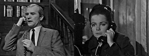 At Collinwood, Roger comes downstairs and answers the phone, checking his watch along the way. It's Vicki, she says. We've been expecting to hear from you, he says coldly. I'm in Bangor, says Vicki, could you please come up and bring me home? You want me to drive all the way to Bangor on a night like this? Roger asks. I wouldn't ask you if I wasn't so frightened, says Vicki--I think I'm in danger--Burke Devlin--I think he's connected with Malloy's death. What? asks Roger. Do you remember that pen I found on the beach near where Mr. Malloy died? asks Vicki. Yes, says Roger, vaguely. It was Burke's pen, says Vicki. How do you know that? asks Roger. I just found one identical to it, says Vicki, don't you see what this means?--Burke must have lost it on the beach--he could have been there with Mr. Malloy, he could have killed him! Calm down, orders Roger--is Burke there with you now? Yes, says Vicki, he wants to drive me home--I don't want to go with him!--I'm afraid and I don't know what to do! Tell Devlin you can't go back with him, says Roger, make some excuse but get out of it--and I'll come and get you. You will? she asks. Yes, he says, where are you now? The lobby of the hotel, she says. Wait right there, he says, I'll be there as soon as I can. Thank you, Roger, she says. And Vicki, he says--don't mention the pen to Devlin under any circumstances--you wouldn't want to arouse his suspicions. That's the last thing I'd want to do, says Vicki. I'll leave now and get there as soon as I can, he assures her, just wait for me.