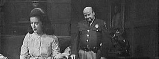 Collinwood - Liz hears someone knocking and comes downstairs to answer the door. It's Sheriff Patterson, who enters, soaking wet, apologizing for the lateness of the house, and asks to use the phone--his car stalled, and the battery shorted so he can't use the radio. Liz tells him to take off his wet things and leave them by the door--go into the drawing room, there's a fire there. Sorry to drag all this water in here, says Patterson. Don't give it a second thought, says Liz, opening the doors and turning on lights. She rubs her hands together and tells Patterson it's a worse storm than she thought. It's pretty bad, he agrees. Make all the phone calls you want, says Liz. He goes to the phone, asking if everyone else is here at home. Miss Winters is in Bangor, says Liz, everyone else is home. That's good, says Patterson--they'd never get up that hill--the rain has caused a washout on the road--we'll fix it as soon as it dies out a bit. I'll get you some coffee, offers Liz. Please don't bother, he says. No bother, she assures him, and leaves the room. Patterson calls Cal--I sure hate to get you up on a night like this, but my car is stalled on the Valley Road, about half a mile from Collinwood--that's where I'm calling from--get someone to call it in, then bring the other car up to me--you can't abandon state property, can you, it wouldn't look good--if there's any other news, call me up here--year--right--he dials again, this time calling Trooper Chuck Woodard--on the road south of the Oak Crossing, there's a blocked culvert, and the water's coming over the road like a river--you ought to notify the barracks, so they can broadcast a warning--that's the place--and if you want me, I'm up at Collinwood--he hangs up and dials again. (Two car town?--wow!)