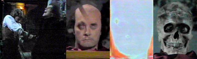 --and Mr. Stiles, he adds, you must refrain from any further demonstrations. Valerie places the head on a nearby flat surface and pulls off the cover. "She's insane, Your Honor!" insists Gerard. That is for me to decide, says the Judge--you have made a serious charge against this young man. And I can prove it, your honor, says Valerie. I want to first know who you are, says Vail. My name is Valerie Collins, she says. She's my wife, adds Barnabas. What proof have you brought with you? demands the judge. During the trial, says Valerie, the prosecution mentioned the disembodied head belonging to Judah Zachary--Mr. Dawson said this head possessed Quentin Collins. I recall that, says the judge--what about it? Quentin looks puzzled, then delighted, as Valerie reveals, I found the head in the home of Charles Dawson. Everyone is silent for a moment. You found this in Dawson's house? asks Vail. Yes, she says. Where is Mr. Dawson now? he asks. He is dead, she says. You killed him, accuses Trask. That will be enough of that, Mr. Trask, orders Judge Vail. Mr. Trask is right--for once--says Valerie, I did kill him--he was holding me prisoner, we struggled, I hit him over the head and he fell to the floor--I thought he was unconscious, but when I tried to revive him, I saw he was dead, so I searched his house --and found the head. Barnabas listens, wonderment and pride on his face. How did you come to be in Charles Dawson's house? he asks. I was taken there--by Gerard Stiles! she accuses. She's lying, insists Gerard. Everything Mr. Dawson said was true--except that the head possessed Quentin Collins--the man the head possessed and still possesses is Gerard Stiles, explains Valerie. How do you know all this? demands the judge--we have to have more than your word in this matter. She gazes at everyone; Barnabas nods his approval--tell them! Gerard looks sick, Quentin hopeful. I knew Judah Zachary, for many years, she confesses, I knew him intimately. But Judah Zachary died in 1692! says the judge, as a grateful smile glimmers around Barnabas' lips. I'm aware of that, says Valerie--it was my testimony that sent him to his death. This is the most astonishing thing I've ever heard! declares Vail. This is outrageous! pronounces Gerard--the woman is telling us she lived in the year 1692. You know I did, Judah! she cries, approaching him, and you know you bewitched me, and I remained a witch, until last night, when you took away all the powers you had given me. I have no idea what she's talking about, insists Gerard--the woman is obviously deranged. You must be aware, your honor, points out Barnabas--it's significant that the head of Judah Zachary was found in the house of the prosecuting attorney. How do we know where she found it? demands Gerard, we only have her word. Yes, she may have placed it there herself, says Trask. Your point is well taken, says the Judge, but with Mr. Dawson dead, how can we be sure where the head was found? I am prepared to swear under oath everything I say is true, she says. Even if you were to take an oath, says Vail, as Desmond looks on anxiously, that wouldn't constitute proof. But I have brought you the head of Judah Zachary! she cries. How can we know with any certainty who this head possessed, if it indeed possesses anyone? asks the judge. I beg you to listen to me--these men are innocent! declares Valerie desperately. Desmond suddenly reaches into the pocket of the guard standing beside him, draws out his pistol, screams, "JUDAH!" and fires it into Gerard's body at point-blank range.