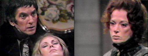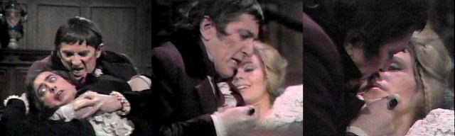 Will Angelique die before Barnabas can tell her how he feels? We'll know shortly. It certainly was an amazing episode as Barnabas watched the man who, in another time band, would have been his son with Josette, the passionate, brash and fluffy-haired Bramwell. Catherine is following in the unfortunate footsteps of Catherine in WUTHERING HEIGHTS--and we all know how that story ended! I love this fiery couple, and although I didn't know we'd never again see Jonathan Frid play Barnabas, I was so glad they gave him--and Lara Parker--different characters to play. I might be in the minority, but I love this pair!