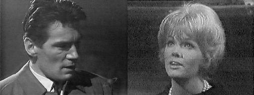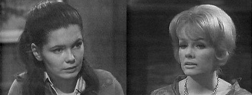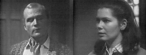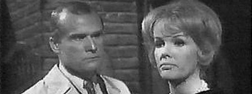 Roger greets Carolyn, but not Burke. Burke rises. Hello, Roger, he says. This man is not welcome in this house! Roger sternly tells his niece--surely you realize what he represents. I'm never certain, says Carolyn, grinning, that's what's so fascinating about him. Then pay close attention, says Roger--he represents the destroyer of this family and you along with it--he's about as fascinating as the Grim Reaper. You should know about the Grim Reaper, accuses Burke--you've played him often enough, but I'll tell you what I represent--honesty and truth--(Superman, move over!)--and I'm willing to speak the truth, anywhere, anyplace--can you say as much for yourself? Absolutely! says, Roger, without any hesitation--Carolyn, would you kindly show Mr. Devlin out. Carolyn tries to placate her uncle, but Burke says never mind--I was just leaving. In the foyer, Carolyn closes the doors and goes to Burke, who remarks that he hopes he spoiled Roger's evening. You haven't spoiled mine, says Carolyn. One of these days, we're going to have an evening to remember, he promises her, kissing her (take her all the way?)--I'll call you tomorrow. He picks up the suitcase. You're very determined to deliver that, aren't you? asks Carolyn. Very determined, he agrees, and leaves the house.