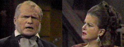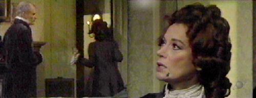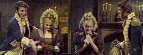He's certain the murderer will be quickly caught. Nathan is bothered by Suki's last words "Barnabas" doesn't Joshua find this disturbing, too? I'm certain there's a simple explanation, says Joshua. Suki never met Barnabas, Nathan points out, and about nine PM the other night, I saw a man in the woods I'm certain was Barnabas. No, dismisses Joshua, Barnabas is in England-and anyway, 9 PM is way too late to be calling on Millicent! (way to deflect, Josh.) I was returning a brooch Millicent dropped, says Nathan. And just WHERE did Millicent lose this brooch? Demands Joshua. The Inn, where we were having dinner, replies the Lieutenant, trying to steer the discussion back to Barnabas.
