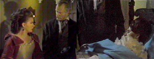 Josette's room - Joshua goes for smelling salts. Naomi, arranging a cover over Josette, spots the marks on her throat. Millicent comes in to find out how Josette is, then mentions Suki had told her about an aunt living in Baltimore-she's going to get her address from Suki's belongings and send her a letter. Millicent leaves.