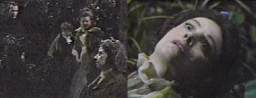 NOTES: One of DS' finest terrifying moments! Oh, how Clarice Blackburn screamed, and with such gusto! And Barnabas--frightening face, glaring at her, pinning her to the wall!