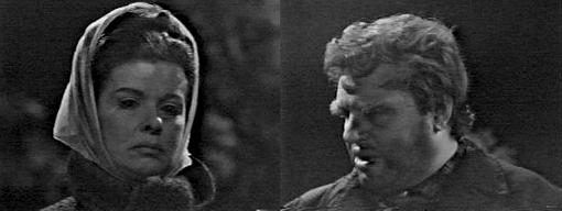 Maggie points out to her father that he's not doing himself any good just sitting here worrying--go to bed and rest, even if you can't sleep. Never mind me, says Sam--you're the one with a job--you go to bed. What good is sitting here worrying? she asks. None, he admits. You're just borrowing trouble, she says--you don't know if anything happened to Bill Malloy--he probably had to leave town for a few days-he'll be back. Will he? asks Sam. Of course, she says. Burke Devlin's a harsh man, says Sam. I like him, says Maggie, besides, what does he have to do with Malloy's disappearance? Burke's not a one to forgive and forget, says Sam, sounding far away. You're holding something back from me, says Maggie--remember the other day when you said you could see death staring you in the face?--was it his death? I don't remember saying it, says Sam. Or your death? asks Maggie. If I did say it, I don't know what I meant, insists Sam--I'm just so confused, I don't know what I do from one day to the next (the booze doesn't help)--why don't you go to bed--please. OK, she says, kissing his head. He drinks, then rises from the chair and picks up the phone.