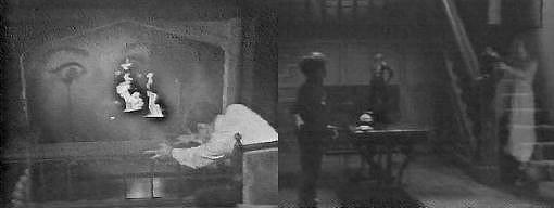 Old House - David and Vicki enter, flashlights in hand. Oh, boy, this is a surprise! says David, gazing around the drawing room. I'm glad you like it, she says. Don't you? he asks. I don't like this place in the daytime, much less the night, she says--let's go into the other room, there should be some candles. David notes the table and chairs and asks what they're doing here. Vicki lights the candles on the table and explains they're expecting two more people. Who? asks David. Dr. Guthrie and Sam Evans, says Vicki. What's Mr. Evans doing here? asks David. The doctor feels this is the right time for another seance, explains Vicki. A seance! says David ecstatically, oh, boy, I always did want to go to a seance! You're going to have to do as you're told, warns Vicki. I will, he promises--why are we having a seance? Because Dr. Guthrie wants to contact Josette, says Vicki--he thinks she has something very important to tell us. Maybe she does, says David eagerly, because it's a seance. Anyway, all the people here are those to whom she's appeared before, says Vicki. Josette appeared to Mr. Evans? asks David. Not exactly, says Vicki, but Dr. Guthrie feels she was responsible for making him paint that portrait. Why would she do a thing like that? asks David. Perhaps because she's trying to say something, says Vicki. What could she be trying to say about my mother in a painting of fire? queries David. That's a question that may be answered tonight, says Vicki. That question is what I've been trying to figure out, he says--it's really been bothering me. I think you should prepare yourself for the chance that what you might hear tonight may not be very pleasant, she warns him. He considers this very seriously.