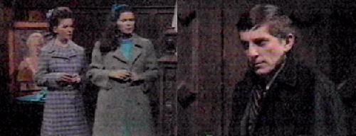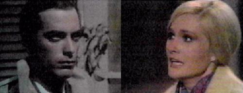 Julia goes to the Old House and Barnabas confesses he brought Vicki to him--she knows what I am, says the worried vampire, and he can't allow her to reveal that to anyone. Julia insists she doesn't know, but Barn says Vicki recognized Angelique. Who is that, queries, Julia, but Barn simply says, "Never mind!"--the point is, if she knows what Angelique is, she knows about him, too. Julia curtly reminds him SHE knows what he is, and if he doesn't do as she tells him, she'll tell everyone. He promises her that before the authorities get him, he will get HER, and she crisply says she'll take her chances. Think it over, she advises. Let Vicki alone or run the risk of being exposed to the world--I'll give you until tomorrow night, she says.