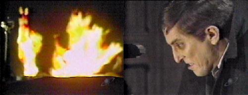 "Burn!" he cries. "It's the only way you will die, the only way this curse will end. BURN!" He's grinning as he walks away from the fire, thinking he's won, but he hears Angelique's laughter and turns to find the portrait restored in its frame. "NO!" he shouts. "NO!" He looks for her. "Where are you?" The laughter continues, mocking him.