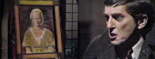 Barnabas enters and greets Carolyn on the landing. I want to talk to you, he says. I'm having dinner with Tony, Carolyn tells him. That can wait, he insists, but she seems ready to defy him. Finally, she troops back downstairs. He asks about Vicki, and then asks if she noticed that Vicki now seems "more like you." Carolyn touches her throat--she didn't notice. He says he must stop Vicki's obsession with the past. You should have allowed Vicki to feel whatever she feels, protests Carolyn, but their discussion is interrupted by Liz and Vicki's entrance. Vicki is carrying a painting, and Liz tells her to go get the easel that was in the study. Vicki sets it on the foyer table and uncovers it. Vicki insisted on buying it after seeing it from the window. Liz asks Barnabas to fix her a sherry. Liz tells her it's early to bed, but Vicki says she keeps having nightmares. Even last night? asks Barn. Yes, says Vicki. Liz comments that the portrait goes so well with the house. Vicki says it's a very familiar-seeming woman and turns it around so Barnabas can see it. He's horrified. "Angelique!" he explodes, and Liz remarks that she IS angelic looking. (LOL!) She asks him where he thinks it was done. "Does it matter?" he asks, clearly perturbed--I don't have time to examine is carefully. He asks Vicki if he'll see her later, and Vicki touches the scarf around her neck and says no, not tonight--tomorrow.