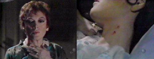 Morning. Julia enters Vicki's room, awakening her. Who is it? Vicki asks. Just checking on you, Julia says. Vicki had a bad dream--strange, she can't remember it. Julia suggests she go back to sleep, but as she settles Vicki back in bed, she spots the marks on her throat.