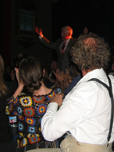In the pic of Cobert being applauded, the fan directly in front of the camera, turned towards Mr. Cobert is none other than our own ProfStokes, and she is wearing---THE AFGHAN!  [dancing_bones]
