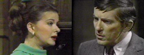 471 - Mrs. Johnson (long time no see) comes downstairs and into the drawing room and notices the painting of Angelique is gone. Liz comes in and tells her to hang the picture over the desk in the drawing room. Mrs. Johnson tells her she can't--Roger and the painting are both gone, and his room hasn't been slept in. Both women are concerned. Mrs. J asks if she should call the police. Liz says no, they will wait until evening. Liz asks the housekeeper to let her know when Vicki returns, and Mrs. J asks if her son, who's been out of the country a long time, could stay at Collinwood--he won't be any trouble. Liz is fine with it. Barnabas stops by and Liz is surprised to see him out of the hospital--his swift recovery is wonderful, she says. Liz takes her cousin into the drawing room and asks if he found Roger's behavior unusual at the hospital. Barn agrees he seemed remote. Liz is worried it's something serious--he's been missing since early the previous evening and didn't sleep in his room; she has no idea what happened to him. If Roger is troubled, says Barnabas, he'll work it out--he's a stable man. Liz says he ISN'T stable right now; he's been acting weird since the painting came into the house.