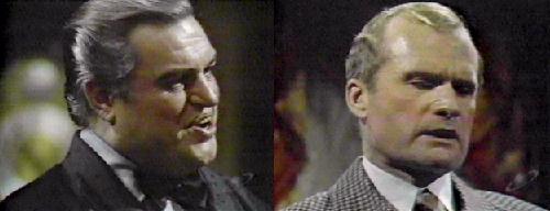 At Lang's house, Barnabas tells Lang he felt completely helpless at Collinwood, that if he didn't leave the house, he'd have "harmed" Vicki. A grave mistake, says Lang, which Barnabas is well aware of. That's why I came here, agrees Barnabas. Lang is going to arrange an immediate transfusion, which he'll need once a week for the time being--by the way, did Barnabas consider Lang's offer to help him and Vicki, in return for cooperating with Lang? Barnabas needs more time to think, and needs far more info about Lang and what his plans are. Lang says this will free Barnabas from the curse that has plagued him so many years. You haven't told me how, Barnabas reminds him, and Lang says that he could have the physical appearance of Jeff Clark--does he think it possible? No, says Barn, but Lang says it is--and it would help him win Vicki back.