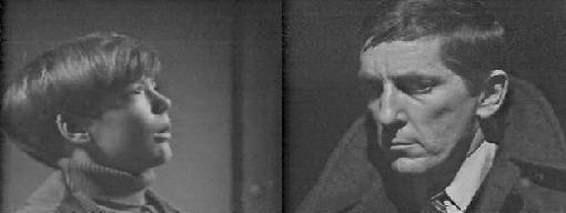 But I haven't lost anything, says Barnabas. I was talking about a sunrise, maybe it was a sunrise you saw, only it's your home, says David, and it makes you sad to think about it. Barnabas looks melancholy. Perhaps, he says. Do you miss your home? asks David. I did for a long time, says Barnabas, but I don't anymore. He walks slowly downstairs, staring around him with obvious pleasure and recognition. He looks triumphant. (So much conveyed in this scene on Frid's part--sorrow, guilt, longing--almost touchable in its intensity.)