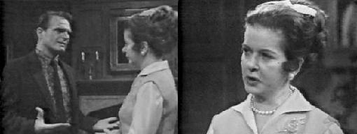 Forgive my curiosity, she says, but I understood that Barnabas Collins, the son of Naomi and Joshua, died a few years after he went to England. That's true, says Barnabas, but apparently the family history didn't tell of his marriage, or the fact that he had a son who proved to be my great great grandmother. How strange that no one every heard of it, says Liz. When one considers the communications in those days, he says, the family separated by great distances sometimes lost track of some of its members. I suppose you're right, says Liz, smiling with delight. She suggests they go into the drawing room. Thank you, he says, following her in. So there's a whole branch of the Collins family flourishing in England and I never knew it, says Liz. Flourishing is hardly the word for it, he says--alas, I am the sole remaining member. I'm sorry to hear that, says Liz, have you no family of your own? As yet, no, he says. But there's still hope? she says, taking on a matchmaker face. There's always hope, he says. Anything definite? she asks. (nosy Liz!) Not as yet, he replies. Did you come to America to find a bride? Liz asks. That wasn't my sole purpose, but I don't rule it out as a possibility, he says. I'm glad to hear that, smiles Liz--shall we sit down? Thank you, he says, and they sit together on the sofa. What were your reasons for coming to America? asks Liz--a business trip, or just for a visit?--forgive my asking all these questions. At the moment, I consider it a visit, he says, but there's a possibility I might settle here, in Collinsport. I can hardly believe it, she says--another Collins, I can't tell you how pleased I am--now you're descended from Barnabas, but the rest of the family, the whole history, I want to hear it, please give me the details. There's very little to tell, he says. I doubt that, she says. Perhaps there's too much for this initial visit, he amends--after all, I only wanted to present myself and pay my respects. Surely you'll stay for dinner, she says. I don't want to impose on your time any further, he says, I did come unannounced. That doesn't matter, she says, but please stay a little while--you have other cousins to meet--my daughter Carolyn, my brother Roger and his little boy, David. I look forward to it eagerly he says, rising, but perhaps another time--I may come again, may I not? Certainly, she says, standing, and please don't feel you have to be so formal. You're very kind, he says. I realize I should ask you to stay here at Collinwood, says Liz, but at the moment, the household is a little upset, we have temporary guests. Please, even to think of it is sufficient courtesy, he says, but I think you understand when I say I want more independent quarters. I understand perfectly, says Liz, but you must come again, and often. I shall, he assures her, walking over to the window. I've always loved Collinwood, he says, it's just as I remembered it. Remembered it? asks Liz, puzzled--but you've never been here before. I feel as though I have, he says (good catch)--descriptions, stories, they've all been handed down from generation to generation, and being here now is like returning to a memory from childhood--don't be surprised if I know Collinwood quite well--even the Old House near Widows' Hill, where our poor ancestors Josette and Jeremiah lived for a time--and I understand that Joshua Collins, my direct ancestor, lived there with his family--even after this house was built. You certainly were well schooled in the family history, says Liz approvingly. I wouldn't be a Collins if I weren't, he points out, walking away from the window--and I wouldn't be a Collins if I didn't recognize in my blood, in my soul, that my roots are here--and perhaps my destiny. (gives me shivers) Forgive me, he tells Liz, who looks at him with a fond smile, I tend to romanticize--promise you'll pay no attention to me. I understand, she says. Now I must go, he says. You must be tired after your trip, she says. Yes, it was a long and difficult journey, he agrees--like coming from one world to another. (exactly like!) Is life in England so different from what it is here? she asks. Of course not, he says, and yet so much is so different--but Collinwood hasn't changed, I mean from what I've always heard--and I can't tell you how grateful I am for that--how very grateful. He heads for the door, Liz looking after him with a big grin on her face.