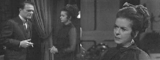 NOTES: Jonathan Frid often tells the story that the first time he was required to bare his fangs on camera (and I guess this is it), in his efforts to insert them, he made a mess of them and ended up chewing them up and ruining them. So when we see Barnabas baring what are supposed to be his fangs, those are actually his real eye teeth he's showing us, and much more effective than the fake fangs would have been. A completely chilling final scene!