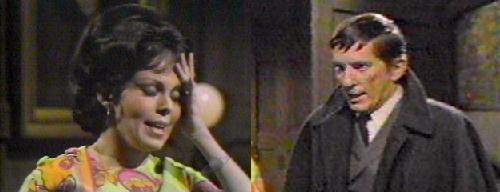 Loved the scene between Barnabas and Cassandra! So much hatred between them, and she's being so obstinate in admitting who she is! Mrs. Johnson must have wondered what the hell was going on between these two, finding them in what surely looked like a compromising position. Fainting, indeed! Mrs. Johnson probably thinks the new Mrs. Collins is a slut. Imagine Barnabas offering himself to her to save Lang. Would she have accepted if things had gone differently? Would she and Barnabas have left Collinwood together? Ah, the speculation!