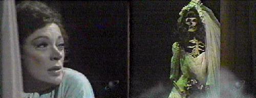 Julia studies Lang's notes, clearly exhausted. She has to go to bed, she tells herself, but steadfastly refuses to give in. Finally, her head falls forward and she sleeps. Her beckoner is Mrs. Johnson, and the fourth door contains a dark-haired, skeleton bride, which makes Julia scream harshly...