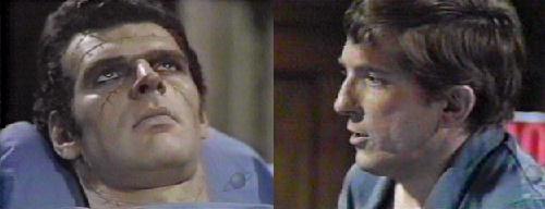 NOTES: When Lang left his message on the tape recorder about what would happen if both Barnabas and the creation lived, I assumed they both would, and wondered what complications would ensue. Here we have Adam and Barnabas, both alive, and we know something Barnabas and Julia don't--if Adam dies, Barnabas reverts back to being a vampire, so Adam's survival is pivotal to keeping Barnabas curse-free.