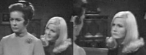 Already working on his new conquest, Barnabas goes to Collinwood and gives Vicki a handkerchief that once belonged to Josette. She admires it and says she loves family heirlooms--she's an orphan, you know, and has always wanted a family. This being the first he's hearing about this, Barnabas is probably thinking, hmm, no family ties, no one to stop me! He warmly invites Vicki to the Old House to discuss the past with him.