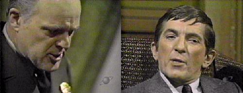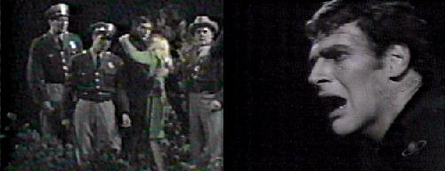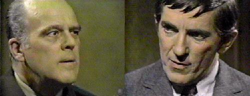 Do you think Julia did it? queries Barnabas. This whole business stinks to high heaven, opines the sheriff (love it!), and no one is above suspicion, including Barnabas. Barnabas asks what connection he could have with a vagrant, which is what he believes the man to be. The sheriff doesn't know anything but what he feels, and he won't let up on Barnabas until he tells him everything he knows. Barnabas feels he's making a big deal about nothing. The man kidnapped a member of your family, the sheriff says, but Barnabas says he believes Carolyn is quite safe. How do you know that? asks the sheriff, and Barnabas says it was something Willie told him. Ah, now we're getting somewhere, exults the sheriff. Not that Willie knows the man, says Barnabas, but the man did come to the house several days ago, looking for food. Willie felt sorry for the man and gave it to him. The man couldn't speak at all, and didn't understand what Willie said. Willie did mention Barnabas' name several times, which could explain how he knew that name. What did Willie say to reassure him that Carolyn is still alive? Asks the sheriff. The man seemed gentle, said Willie, but the sheriff points out all the opposing facts-the kidnapped woman, wrecked jail cell and broken-necked deputy--why didn't Barnabas come to him in the beginning? Barnabas explains that he feared being implicated somehow. The sheriff still isn't convinced he's not. A knock at the door intrudes on the inquisition, and Barnabas lets in one of the deputies, who tells the sheriff they've tracked down the man-he was hiding Carolyn in an old root cellar. They're heading now for Widows' Hill. This perturbs Barnabas. The sheriff says to get all the deputies, they'll have him trapped. The sheriff insists on Barnabas coming along, not for help, but to be there when's he's caught-he wants to see if this man recognizes Barnabas. Tight-lipped, Barnabas gets on his cape, grabs his cane, and ushers the sheriff out ahead of him. A deputy stands guard at the Old House door.