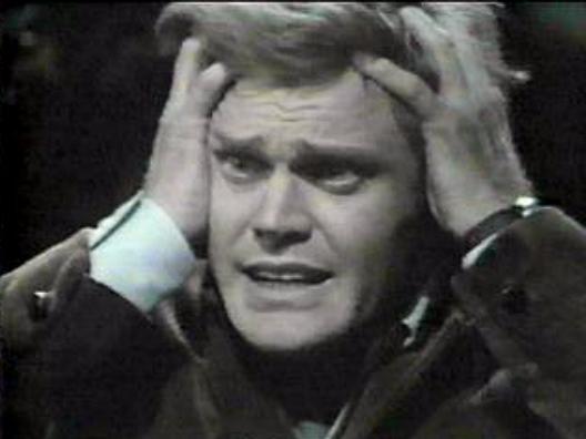 I only notice when he grasps his upper head with both hands in terror, which is an unusual sort of acting choice, don't you think?   Well, there he is in this thread, just look at him!