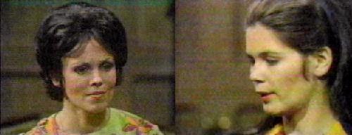 Roger's bedroom - Cassandra continues to work her wiles, keeping Liz thinking of death, telling her she is going to be seeing life through the eyes of another woman who lived in a different century-Naomi Collins!--you will learn what she knew, and if I choose, you will die as she died, by the same poison. Cassandra has a little apothecary arranged in front of her, but hides it when Roger comes upstairs. (She's wearing the butterfly dress again!) Roger wants to know why the door was locked. Because David kept coming in, she says--she was thinking of that nice Mr. Evans (oh, what a lying bitch)! Roger says Vicki called from the hospital, and Cass wonders if Vicki was alone with Mr. Evans. Maggie will stay with them a few days, says Roger, and Cass agrees that's fine. Liz isn't herself, worries Roger, he had a weird conversation about death with her--it's all Liz can think of.