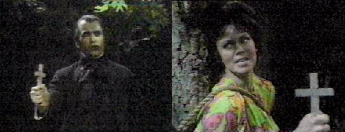 Julia tells Barn to go to the house, perhaps if she sees him. . .what about his reliving the terrible night his mother committed suicide rather than face what he had become? Oh, God, Liz might do the same. The sight of Barnabas might bring Liz back to reality-and remember that THAT Barnabas Collins no longer exists-the vampire is gone, only the man lives on. They head upstairs.