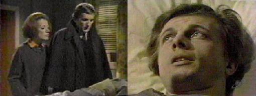 Julia gives Barnabas another injection and tells him she's pleased with his progress. He's astute enough about her moods to know something is bothering her, but she covers by saying Willie was committed today, and she feels badly about that. So does Barn. (These two should just give us all a break, huh?) At least, says Julia, Willie's convenient insanity removes all suspicion re: Barnabas' involvement in Maggie's kidnapping. That just leaves Cousin David, says Barn. Julia is forced to admit he wasn't receptive to hypnosis, that he'd dreamed about her medallion and was afraid of it.