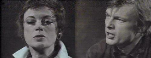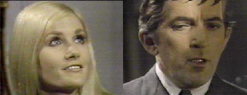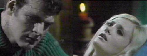 Down in the lab, Julia tells Barn she wishes it weren't Carolyn. "Julia, please!" be begs. He tells her Carolyn understands the risks, and Julia says she feels bad worrying about the dangers to themselves. He assures her nothing will happen, but Julia reminds him this is only the second time for the experiment, and it didn't go according to plan. It went well, he says. Yes, by chance, she says--who knows this time? Barnabas says it's perfectly natural for her to be apprehensive, and she orders him not to try to "handle" her. He denies doing this, and she retorts, "Yes you were!" They realize they're both upset and Julia says such situations can turn allies against each other. Adam comes down and tells them Carolyn is coming; she wouldn't change her mind at the last moment. Barnabas says he hoped she would, and Julia concurs. When Adam warns Julia that both creation and Carolyn must live, he sees fear in her eyes, and tells her she must not be nervous and make a mistake. Barnabas tells Adam he's making her more so. Carolyn comes downstairs and touches the table on which she'll be lying. She surveys the creation and asks to see her. Adam says she won't be as beautiful as she is, which bothers Carolyn--of course she will be, and Adam must think so. She demands he say that to her--judge her fairly. She forces him to say it as if he means it, and he response, "I will," as if in a wedding ceremony. Carolyn gently tells Julia she's glad she's doing this. Julia tells Adam to leave, but he wants to stay. She refuses, it's terribly difficult to accomplish; she wouldn't allow him in a hospital during surgery. Barn agrees. Carolyn begs Adam to do as they say, but he refuses to leave her. Another reason, says Julia, you're emotionally involved. Adam points out both Julia and Barn are emotionally involved, but in a different way. Barnabas argues they have more knowledge than Adam, and Julia says Adam will interfere with her concentration, which could mean the difference between success and failure. Adam says stubbornly, "I will stay." "You will NOT!" responds Julia. The camera focuses on Carolyn during this, who is growing upset. Barnabas asks Adam if he doesn't have faith in them, even now--they won't try to get out of this. Carolyn begs them to stop; she can't just stand there--what difference does Adam's presence make? She wants to start now. Julia tells Carolyn to lie on the table. Adam lifts her up himself. She holds onto him with both arms. He leans in and touches her hair, gazing at her with love. She gazes back, looking equally smitten. Julia orders Adam to stand at the arch and neither move nor speak, no matter what happens.