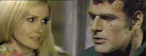 Adam looks goofy, imaging how glad he'll be when this is over and he sees two Carolyns and one is his. Julia hesitantly tells him the creation doesn't look like Carolyn, infuriating him. Barnabas tells him that was impossible, there were no qualifications. Julia promises Adam he will like the way his mate looks, but Adam in unsure. Trust us, asks Julia. Adam asks if she will be like Carolyn, and Julia says she will if they use Carolyn for the life force. Adam says THAT is definite! He warns her not to try and talk Carolyn out of this, grabbing her arm for emphasis, and Barn forces him to drop it. The equipment is ready, says Julia. Adam again asks if the mate will be like Carolyn--or like him, as different from the life force as possible? (there are more similarities than you realize, Adam.) Julia doesn't know, and Barnabas is stoic. Julia says Lang believe it possible to bring one's personality, "?lan vitale," into another body--that was the purpose, so they have to hope Carolyn's spirit is in this one. Adam warns Julia that the mate had better be like Carolyn, and Barnabas asks if they are never to be free from his threats--they're doing as he told them to do! Adam asks Barn why he isn't more like him, and Barnabas responds perhaps because they both are alive. Carolyn must be alive, too, barks Adam, and Barn reminds him Carolyn is his relative and friend--if he believed this equipment would cause her death, he'd destroy the equipment. Adam accuses him of loving Vicki more, but Barnabas reminds him he threatened everyone at Collinwood. Barn wants to get the experiment underway so Adam can take his mate and leave, as he promised. Adam gazes at the draped form and wonders if he'll like her. You won't know until she's alive, says Barnabas cruelly, heading up to get Carolyn. Adam asks Julia if she understands his concerns, and she says yes, in a way she does. He feels she knows more about love than Barnabas, but Julia says she understands Adam's kind better--but she knows Barnabas is capable of great love, she's seen it. Adam observes that she's frightened, but she says no, not now. He can tell she is, he insists, but she says she just has to push the proper buttons and trust the equipment--nothing to fear. She suggests he's afraid, and he looks at the creation on the table and fears what will happen if she doesn't like what she sees. What will he do then? WHAT?