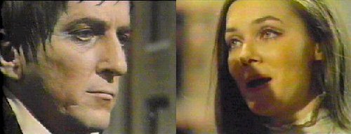 Vicki lies, seemingly dead, in the drawing room at Collinwood. Angelique comes out from the shadows of the room and says, grinning evilly, "Soon, they will come for you, bury you, never knowing the real truth. They will place you in your casket and bury you in the earth. Then, and only then, will I release you from my spell. You will awaken and find yourself in your tomb, a tomb from which you can never escape. You will scream, and cry out for help, but no one will hear you. Then gradually, you will die again, and this death will be the most terrifying death of all. But what death could be more fitting for the woman Barnabas loves?" (That is so bitchy, Angelique, and do you really think Barnabas will want to stay with you after such a betrayal?)