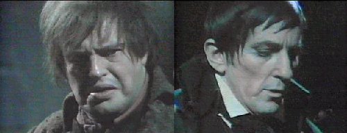 Barnabas slips on his cloak. Ben comes out and asks if "she" is gone. Yes, says Barnabas, I have many things to attend to and little time. Ben overheard what Angelique said, and feels Barnabas is a fool to trust her. Barnabas agrees he might be. She doesn't want to help Miss Winters, says Ben--she never did anything good, never anything but evil. Barnabas is well aware of that. Why did you agree to the bargain then? Asks Ben. What else could I do? asks Barnabas--I can't save Vicki myself, and if there's once chance I can believe Angelique, I must accept her offer. Ben thinks he's taking a mighty big risk, but Barnabas is willing to do this to save Vicki.