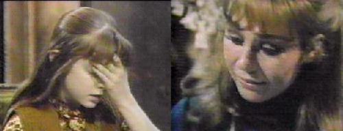 David doesn't know, and accuses her of getting afraid again. Why must Carolyn go get Chris? she asks. Because it's what Quentin wants, David reminds her. What will happen? Amy asks. Again he assures her nothing bad. Amy protests he doesn't know any more than she does, but he says all Quentin wants Carolyn to do is leave the house--it has nothing to do with Chris, he's just going to scare Carolyn so she'll stop interfering. Amy thinks she understands. They hear footsteps, so Amy returns to her lying down position. Carolyn comes in and asks how Amy is feeling. All right, says the little girl. Carolyn tells them Maggie went to the cottage to get Chris. The kids exchange upset looks. "She shouldn't have done that," says Amy, puzzling Carolyn--I thought you wanted to see Chris, Amy. I do, says Amy, but. . . I thought Carolyn was going to the cottage, says David. It makes no difference who goes to get him, insists Carolyn. But it obviously makes a lot of difference to the perturbed children.