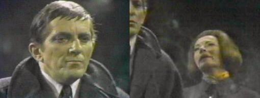 Vicki, drawn to Widow's Hill, joins them and tells them about Burke's plane. Julia gasps, and Barnabas, citing the cold ("I'm concerned for your health, my dear," aka, I'll kill you if you don't get the hell out of here), heartlessly sends Julia back to the house so he can be alone with Vicki. Julia doesn't want to go, but sees THAT look on Barn's face and decides it would be best for her to exit. As Julia leaves, Vicki stands at the cliff's edge, gazing helplessly out on the ocean. Vicki wonders about the Brazilian jungles, and vows to ask Burke about them when he gets back. She appeals to Barnabas to tell her that Burke is coming back to her, and he wisely does so, bolstering his own future hopes by telling her if it were HIM, nothing would stop him from returning to her. Vicki expresses sorrow that they never set a wedding date. She mentions the West Wing, and Barnabas says it's beautiful and suggests they look at it together,