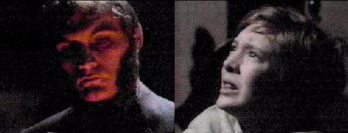 David asks if it was something bad, something he would have been ashamed of--if we're such good friends as you say we are, why won't you let me go? (This was really sad, and Henesy really wonderful.) I don't like it when you hurt people, it makes me feel guilty--"Oh, Quentin, won't you let me go!" David gets back into bed, huddling under the covers. Quentin, hands held in a throttling gesture, approaches the terrified David.