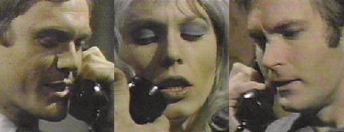 Barnabas asks if she's sure David didn't bring the phone with him. Maggie is sure he didn't--I left it in my room--Amy later said it was gone; Quentin took it and somehow brought it here--he communicates with them through this. Maggie begs to be allowed to accompany him, but in his usual chauvinistic way, he orders, "Stay here!" I don't want you to go alone, she protests--I blame myself for the kids' disappearance. We can't have anymore tragedy, insists Barnabas--you've got to do as I say. She stands in the drawing room, staring at the phone.