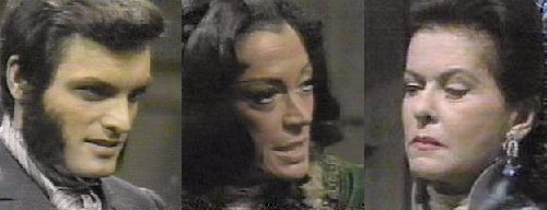 Quentin darts out at Magda as she's heading for the door, humorously asking if she told Grandmama she'd live forever. She knows that isn't true, says Magda--I told her what the cards said. Quentin asks if the cards suggested a sum of money for the gypsies. Magda doesn't answer. Quentin reminds her when his grandmother dies, Magda is going to need friends--and I have no prejudice against "your kind"--if Edith should die tonight, you would be forced to leave by morning. Magda says what must be. . .I might be happy to leave. Quentin says you've been here too long and have forgotten the road, you know that--did you discuss me with grandma? You were mentioned, in the cards, she says. Does Grandmama like me more now? He demands. She said many interesting things, says Magda, smiling enigmatically. He grabs her arms and demands to know if Edith told her about the secret. Don't touch me, Magda says, if you want my help. Will she help me? demands Quentin. A stunning woman in an amazingly beautiful dark pink dress comes downstairs, calling his name as if she isn't happy to see him. My lovely sister, he croons--I wondered how long it would be before the news of my arrival would take to reach you. She starts to ask what Edward will say, then spots Magda and brushes past Quentin to nastily say, "I believe Grandmama is finished with you." Cowed, Magda says she was just leaving, and does. I can't abide that woman, says Judith--how can Grandmama listen to her? She orders him into the drawing room. "Ah, a serious conversation," he quips--"Will you close the doors as Edward usually does?" Beth and the other servants listen, says Judith, they all do, all determined to find something out--everyone in the house is against each other. Quentin suggests Judith is against herself. That's a silly thing to say, she says--you saw our grandmother? People have been watching me, he says--she was delighted to see me. She's much worse tonight, says Judith. Quentin asks, "You mean than she was before I came?" Judith drops the civility and asks, why did you come back? Because I was born here, he says--I can't live my life as you do, "Contained in one little bottle, never breaking out, willing to float in the fluid and hitting the sides and even realizing it."