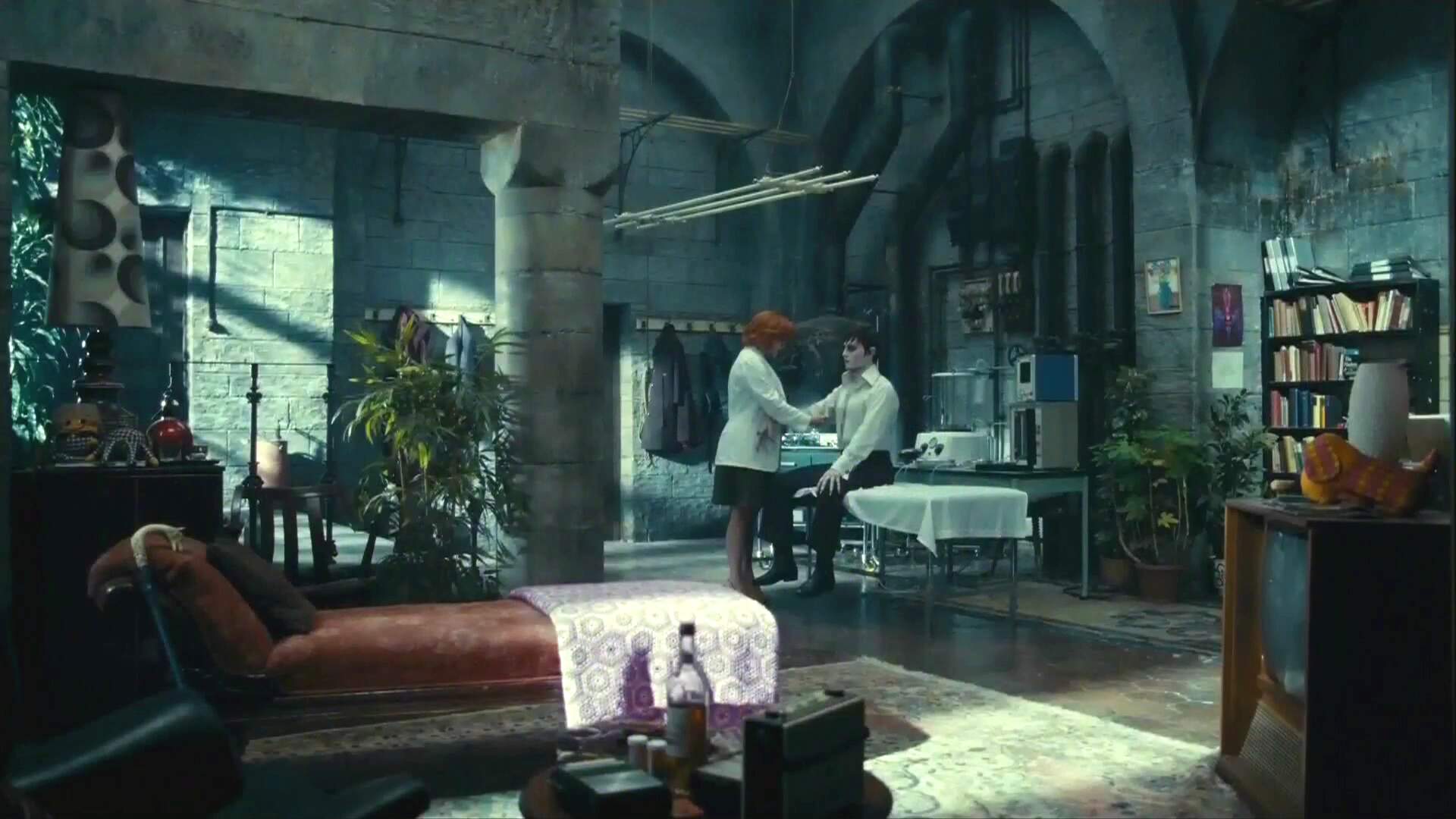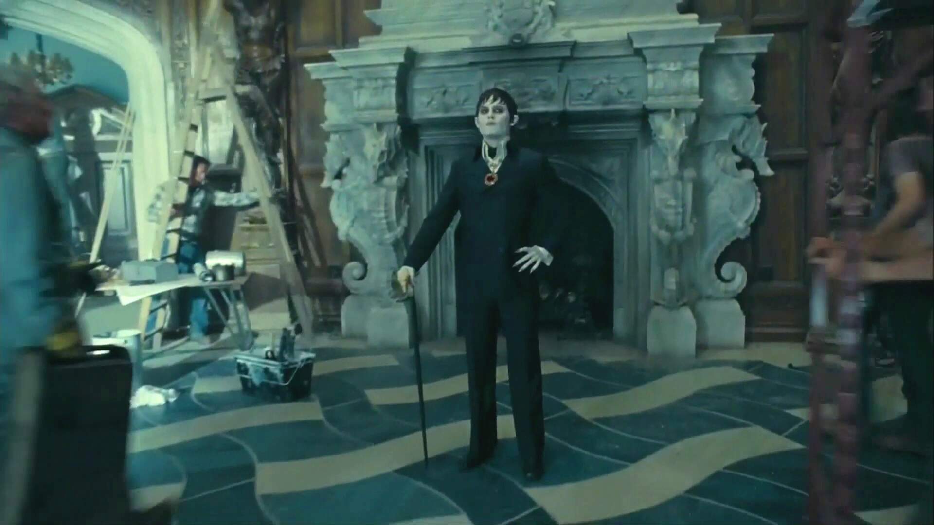 I did not notice that new commercial during the basketball games today, but I did see what I presume to be the same commercial I saw on Friday night. It was much more similar to the trailer that had previously been released, although it included a scene with Barnabas standing in the street as a car whizzes by. It's funny, the scene I had previously described as having Barnabas hanging upside down and looking in through a window is the same scene with Roger kissing somebody. How did I notice Barnabas and fail to notice the action in front of me? Sadly, it also did include a scene with Barnabas on the floor surrounded by a bunch of styrofoam packing peanuts.