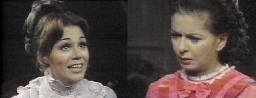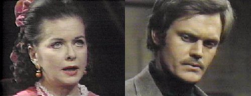 NOTES: Love Crazy Jenny. What a sad, poignant and pathetic person she is, and how wonderfully Marie Wallace portrays her. Why is she mad? What was Judith's real relationship to her? Why has made Barnabas look to frightened? Judith seems fearful of her new role as mistress of Collinwood, and why was she detaining Rachel that way--or was it just to pass the time until Beth returned from her "errand?" Subterfuge, keep her busy until Beth could finish her job of emptying the tower room? Barn sure does seem enamored of Rachel, and the feeling is mutual. How about that lie about being what he seems? It's tough being a vampire again, especially with this sweet, delicious, vulnerable Josette clone available to him.