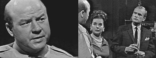 Sheriff Patterson, leaving Collinwood, thanks Liz for the coffee. She walks him out to the foyer and thanks him for coming so promptly. Roger hovers in the background as Liz asks, "You will let us know the minute you hear anything from the Coast Guard, won't you?" He says he'll call her, then asks if Bill Malloy was, perchance, a secret drinker to her knowledge. "You should know better than that," chides Liz, and he says he thought he did, but he heard he was seen alone at the Blue Whale, uncharacteristically knocking back a few the day before yesterday. "He may have had a few drinks," Liz admits, "but not enough to...well, why do you bring that up?" Patterson says he wondered if Malloy might have had enough to explain his falling in the water accidentally. Roger jumps in and Liz stares at him as he says, "Now that you mention it, he DID seem a bit under the weather--and that was at 10 o'clock, you know." Patterson says he'll ask Malloy's housekeeper, a teetotaler, who would surely have noticed something like that. Patterson says there are several other people he wants to question as well, including Burke and Sam. Fingering his hat, he promises he'll be in touch, and Liz walks him to the door. Liz closes the door and faces down Roger. "Well," she says darkly, "how much of what you told him was the truth?" He regards her with glaring, beady little eyes, his face betraying nothing.