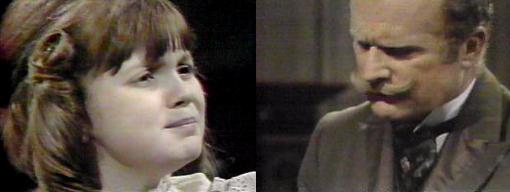 What does it mean? asks Nora. Nothing, her father replies. Why are you carrying on about your mother this way--because of Quentin talking of her? No, she says, he hasn't said a thing--I just have a feeling she's coming back. Not to this house, says Edward testily--don't talk of her again--I'm almost sorry you and Jamison didn't leave for the school last night--I believe it would be a wholesome change for both of you. Nora clings to his arm and begs him not to send them there--I promise I won't mention my mother! (Poor kid, Edward is a pompous fool!) We'll see, says Edward. Beth comes in and asks to speak to him alone--I have to go into the village now, she says significantly, and you said you wanted me to deliver a note to Mrs. Fillmore. He hands her an envelope and quietly tells Beth if she has any comment, you can find me in the study when you return--bring upstairs and into bed. Beth takes the little girl's hand and notices how upset she is, but as she's leading her to the stairs, Quentin interrupts--"Beth, I have to speak to you," he says curtly. I'm busy, she says. It's too important, responds Quentin--it must be now. Nora assures Beth she can take herself up to bed, and Quentin quickly agrees--an escort isn't necessary.  Nora promises to go right to bed and runs upstairs. Quentin leads Beth into the drawing room. You never cease to amaze me, he says, nothing ruffles you, not even the sight of someone you believed dead the last time you saw me--how do you do it? Judith explained everything, says Beth. How could she, asks Q, when she doesn't know everything? I know a lot more now than I did a few days ago, however, I know why you're still at Collinwood--you knew about Jenny all along--why didn't you tell me she was still here--and mad? What would you have done if I had told you? asks Beth. I don't know, admits Quentin. Beth does--you'd have done everything you could to get rid of her. In view of the fact she just tried to kill me...I feel she should have been gotten rid of a long time ago. He grabs Beth's arm--and since no one did, I am going to do it myself, right after you tell me where she is!